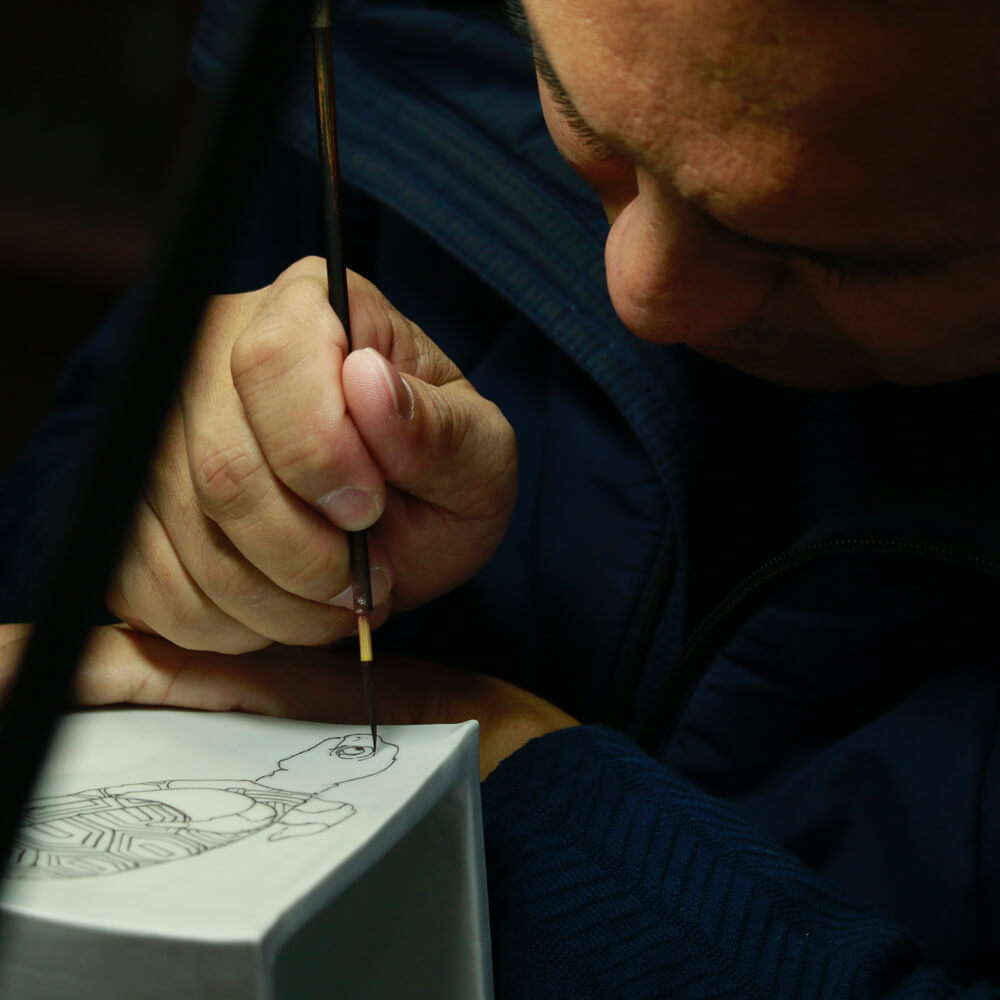 九谷の伝統的な意匠や絵柄、そして九谷五彩を大切にしながら、日々精進して参ります。