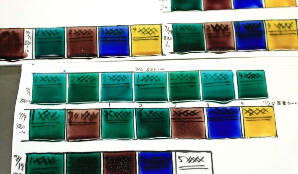 作家は各々の色を持っていて、作り手の想いや作品に合う色、透明度が高くガラスのような色、はたまた、濁った色や深みのある色、など様々